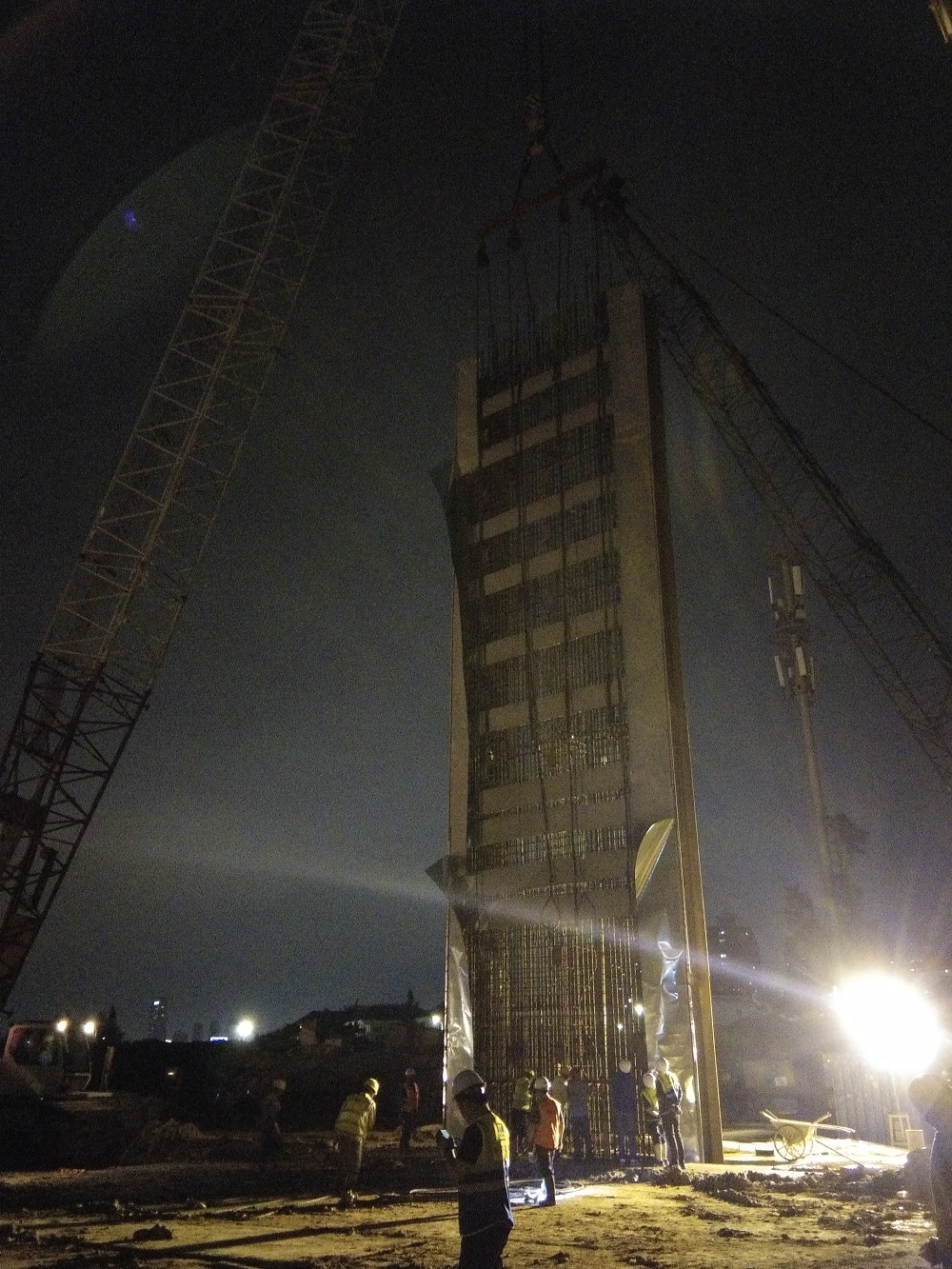 華策·海韻星灣項(xiàng)目地下連續(xù)墻鋼筋籠吊裝現(xiàn)場(chǎng)
